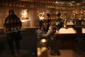 12月13日,中國國家博物館,在“中國古代佛造像”專題展中參觀的觀眾。國家博物館的佛造像藏品于今年12月10日以全新的面貌重新對公眾展出。煥然一新的展陳設計讓觀眾能夠更好地了解中國古代佛造像的全貌。